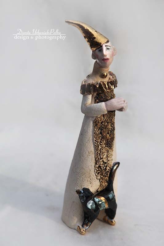 Pierrot - rzeźba kameralna - wykonana z szamotu.