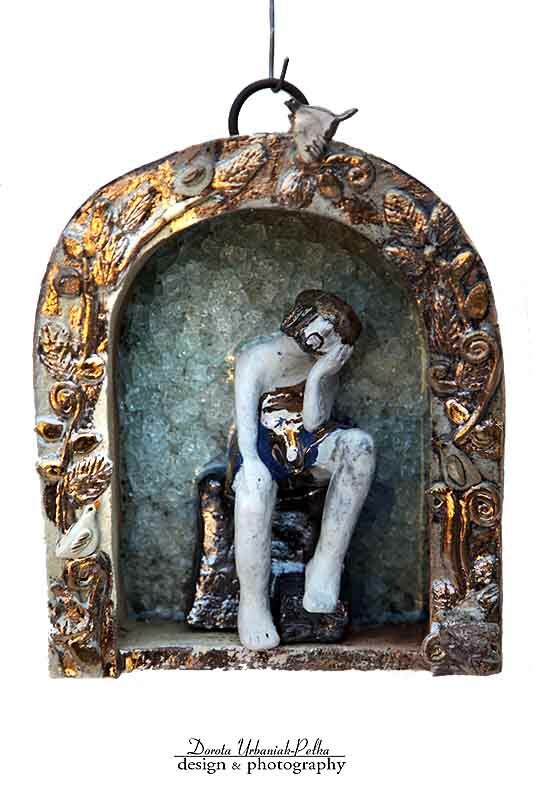 ELEMENTY LIŚCI, PTASZKI, SZATA JEZUSA, SZKLIWIONE ZŁOTEM ,.
