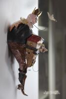 Rzeźba wiszącego Ptasznika wykonana z szamotu szkliwionego.