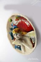 Misteczka - Kafelek ceramiczny - szamotowy - szkliwiony .