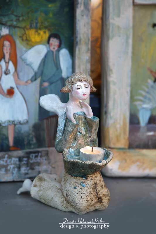 ANIOŁ-ŚWIECZNIK WYKONANY Z SZAMOTU.
