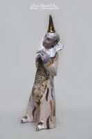Pierrot - rzeźba kameralna - wykonana z szamotu.
