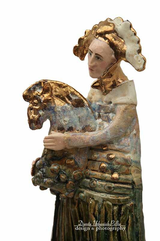 ELEMENTY: CZAPKA, KOŃ, BUT ORAZ ELEMENTY SZATY SZKLIWIONE ZŁOTEM.