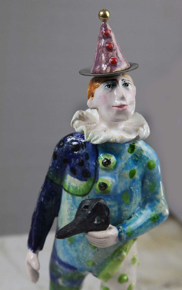 Rzeźba stojąca wykonana z szamotu szkliwionego.