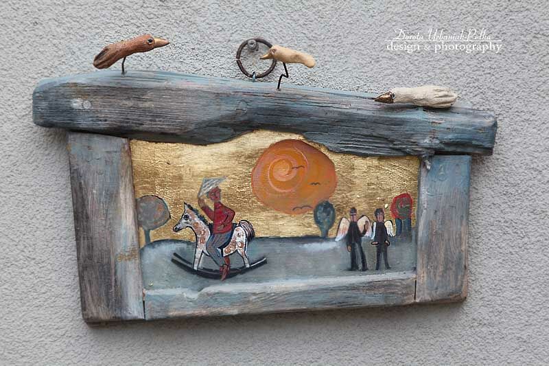 OBRAZ WYKONANY NA DESCE W TECHNICE OLEJNEJ - ZASTOSOWANY SZLAKMETAL W KOLORZE ZŁOTA.