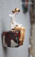 Anioł szamotowy przeznaczony do zawieszenia na ścianie lub postawienia. (vide foto)