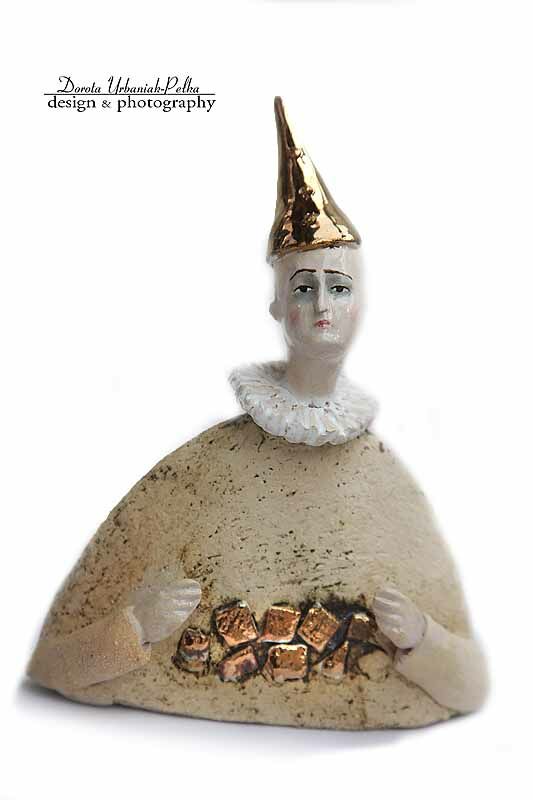 Pierrot - rzeźba kameralna - wykonana z szamotu.