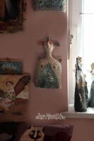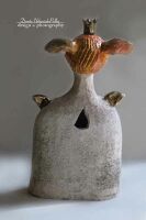 Anioł szamotowy szkliwiony m.in. lustrem.