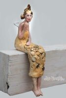 Ptaki, włosy oraz kostki na sukni szkliwione złotem.