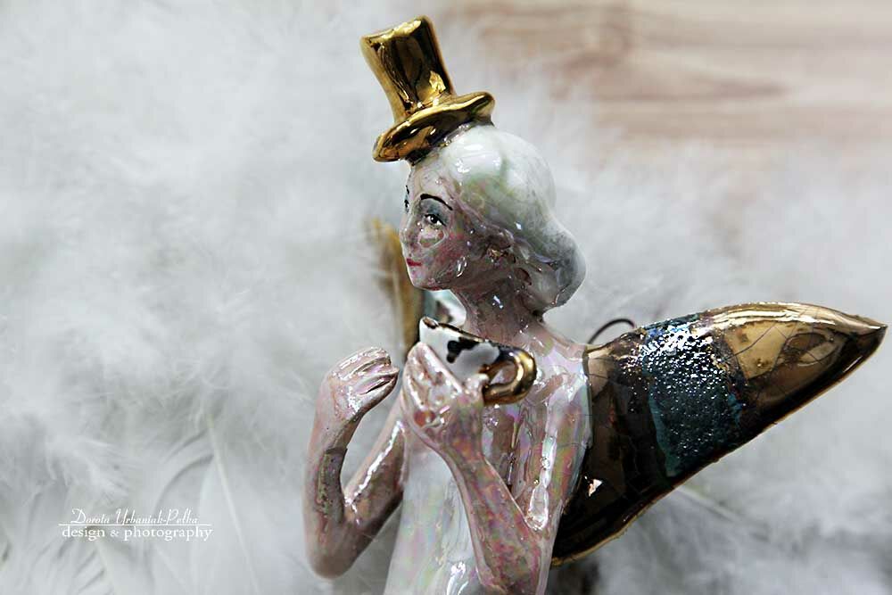 ANIOŁ TURMALINOWY Z FILIŻANKĄ