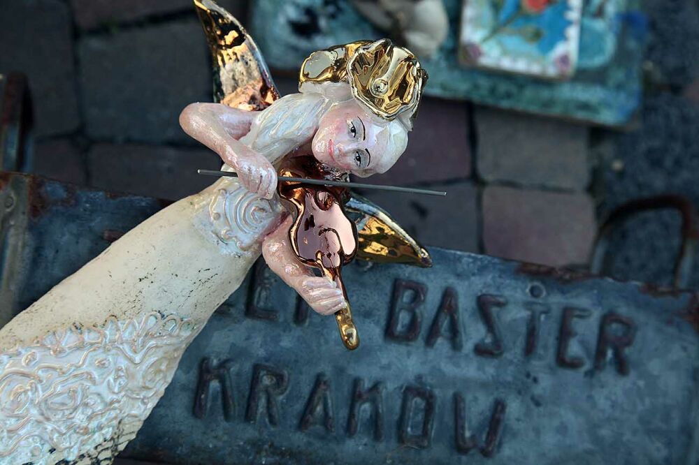 Skrzydła , NAKRYCIE GŁOWY oraz skrzypce szkliwione miedzią oraz złotem.