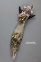 Trąba oraz ptaszek szkliwiony złotem.