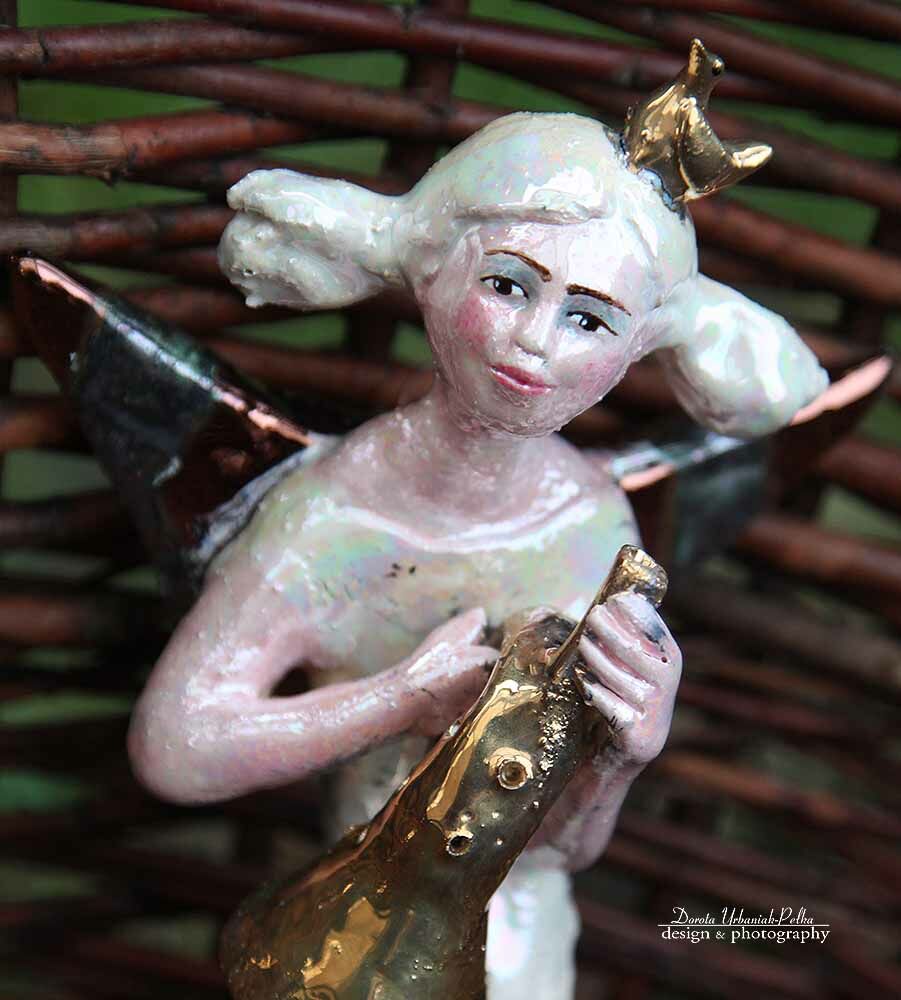 ANIOŁ TURMALINOWY ZE ZŁOTĄ TRABĄ
