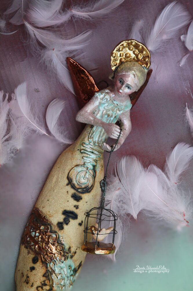 ANIOŁ TURMALINOWY Z PTASIĄ KLATKĄ