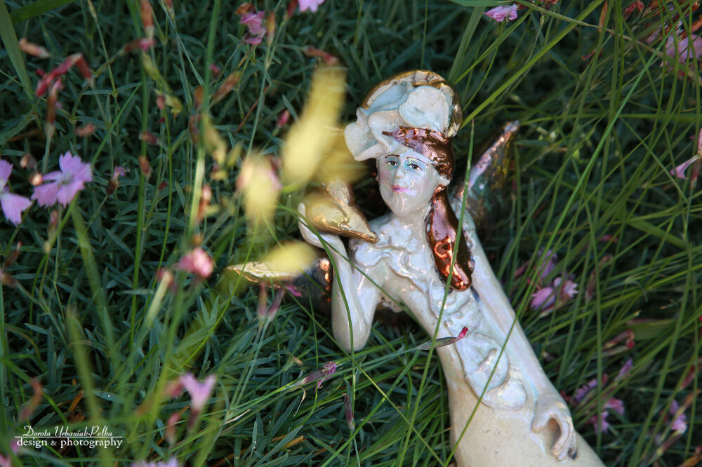 Skrzydła oraz liczne detale szkliwione miedzią oraz złotem.
