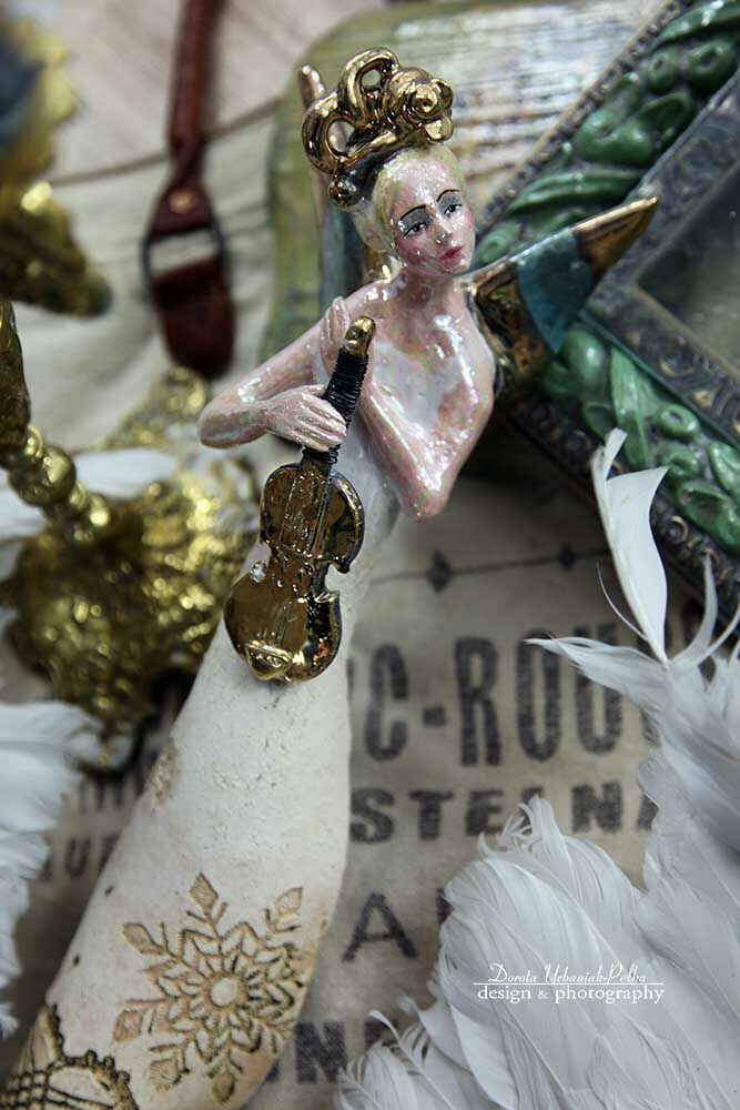 Skrzydła ,wianek i SKRZYPCE szkliwione złotem.
