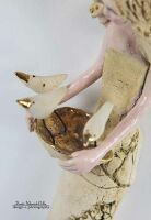 Skrzydła, buciki oraz dziobki ptaszków szkliwione złotem.