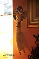 Skrzydła, buciki oraz czubek szkliwione złotym lustrem oraz platynom.