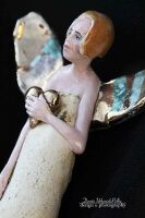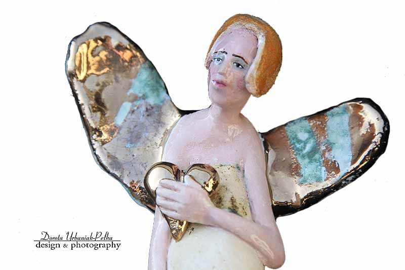 Skrzydła , serce szkliwione złotem