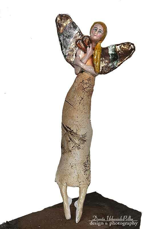 Skrzydła , serce szkliwione złotym lustrem
