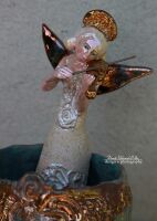 Skrzydła , skrzypce oraz nakrycie głowy miedzią oraz złotem.