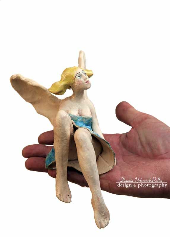 Anioł wykonany z szamotu.