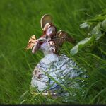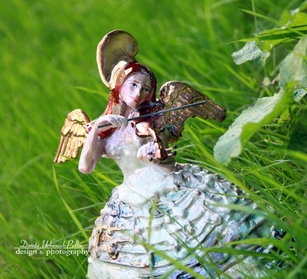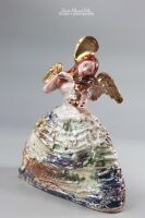 Anioł wykonany z gliny szamotowej wysoko palonej.