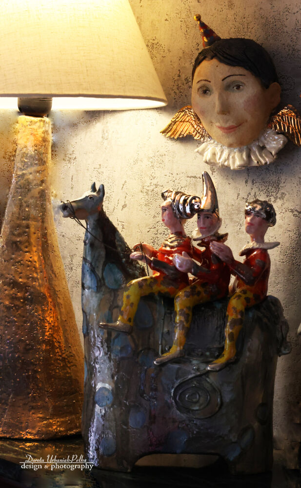 W pewnej galerii, gdzie światło lamp padało jak teatralny reflektor na ceramiczną scenę, stał koń. Nie miał nic wspólnego z Don Kichotem — nie był romantykiem, nie walczył z wiatrakami, a jego jedyną misją było… opowiadać. Koń o maści granatniczej, pokryty bladymi ciapkami niczym akwarelowe smugi, stał jak strażnik osobliwych opowieści.