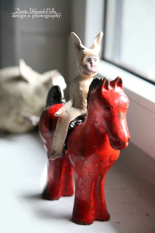 KONIK KARMINOWY Z ZAJĄCEM