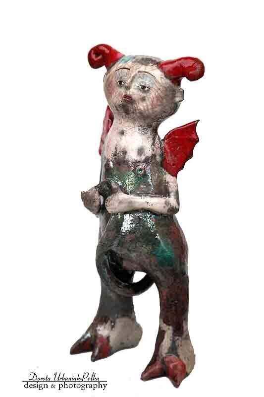 POSTAĆ DIABŁA WYKONANA ZE SZKLIWIONEGO SZAMOTU.