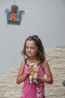| Szamot szkliwiony tlenkami metali. POSTAĆ PRZEZNACZONA DO ZAWIESZENIA NA ŚCIANIE LUB POSTAWIENIA NA PÓŁCE. SERCE, CZAPKA, GUZICZKI, DETALE BUCIKÓW szkliwione prawdziwym 16-karatowym złotem. |