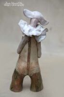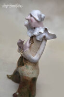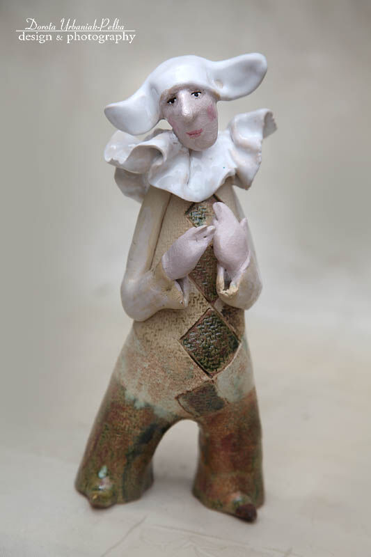 Pierrot wykonany ze szkliwionej glinki kamionkowej.