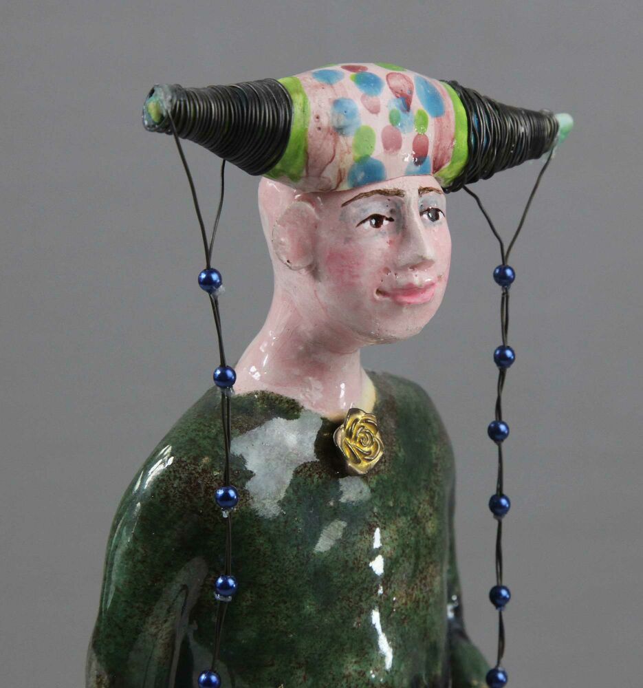 Rzeźba stojąca wykonana z szamotu szkliwionego.