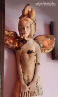 Anioł wykonany z szamotu.