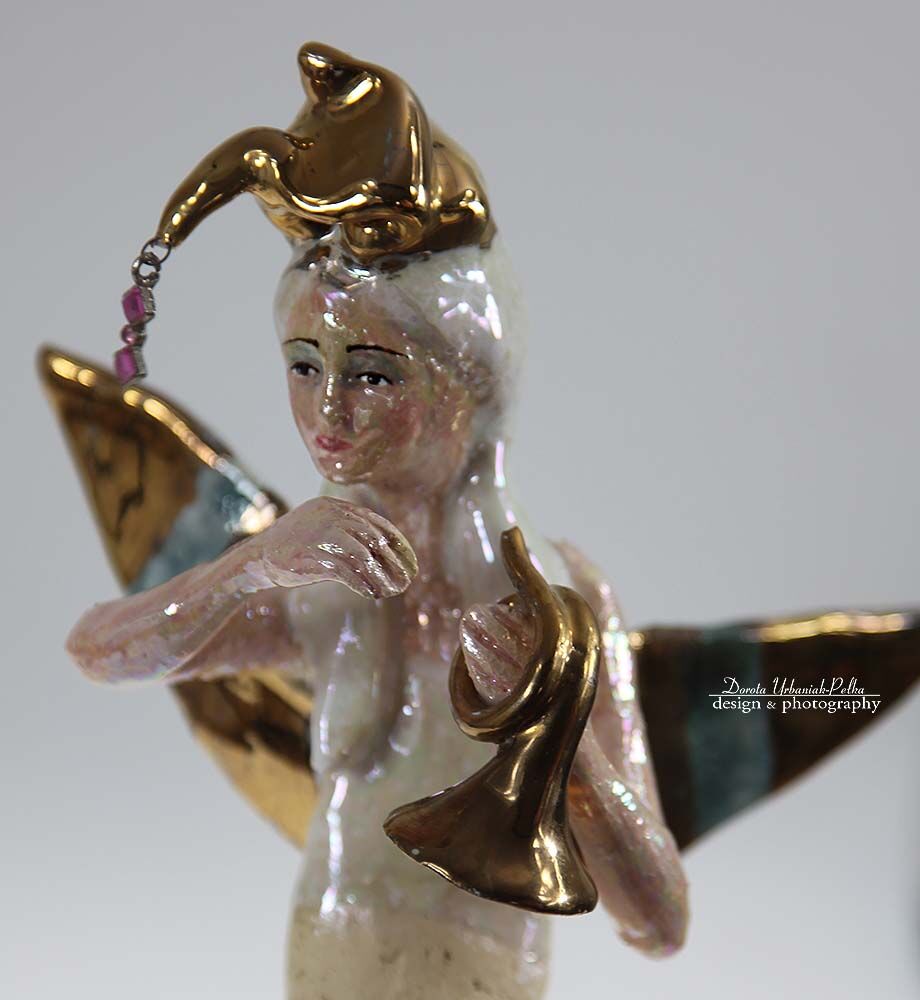Skrzydła, trąbka oraz rożek szkliwiona złotem.