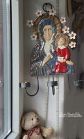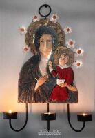CZARNA MADONNA W POŚWIACIE ŚWIEC W BIAŁYCH KWIATACH