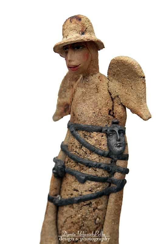 ANIOŁ SZAMOTOWY Z METALOWYMI TWARZAMI