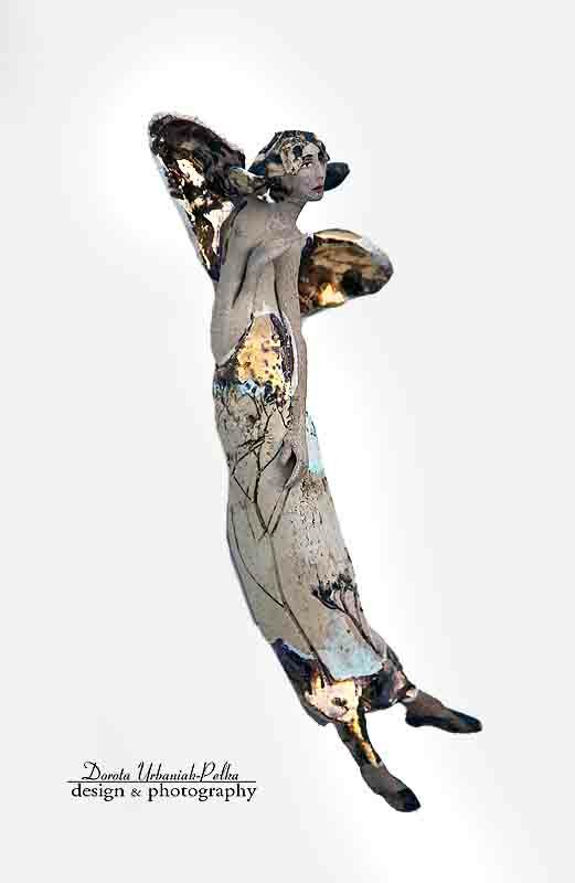 SKRZYDŁA, DÓŁ SZATY , PAS PO ŚRODKU SZKLIWIONY ZŁOTEM.
