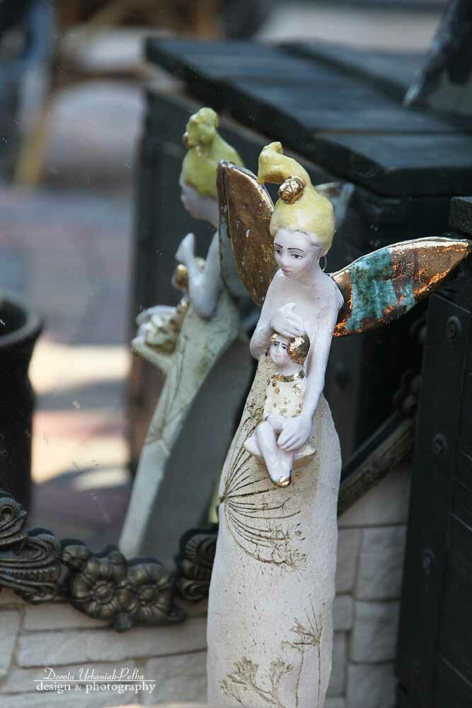 Skrzydła, detaliki i buciki szkliwione złotem.