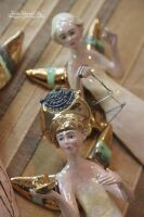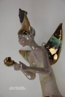 Skrzydła , nakrycie głowy, filiżanka pokryte złotem.