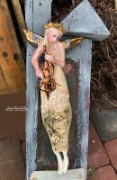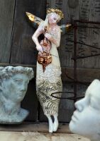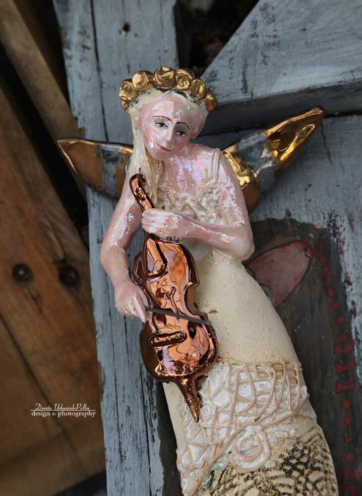 Skrzydła , NAKRYCIE GŁOWY oraz wiolonczela szkliwione miedzią oraz złotem.