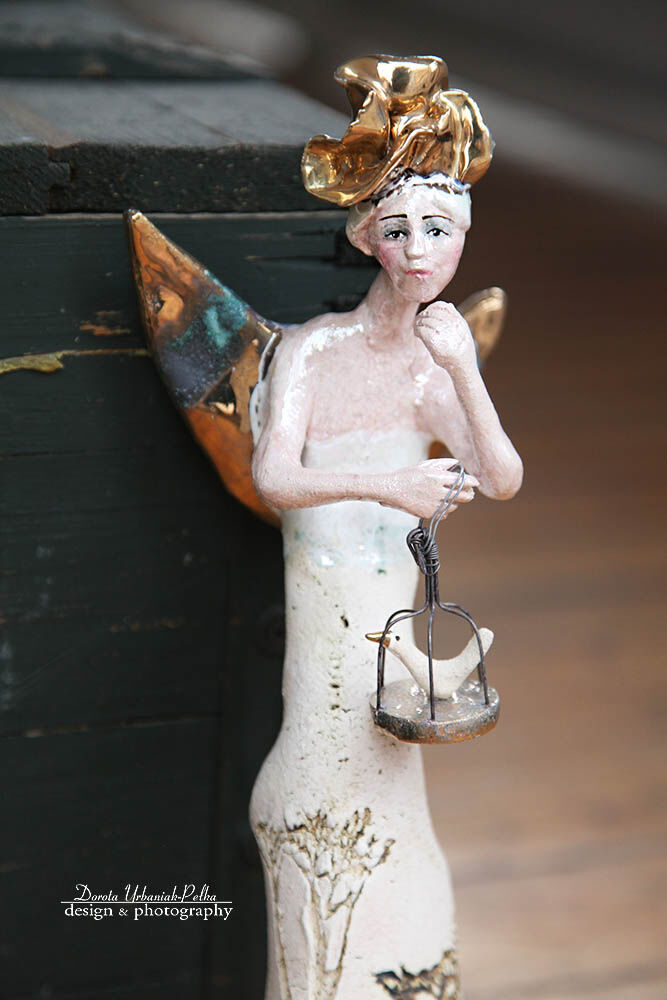 Skrzydła, nakrycie głowy szkliwione złotem.