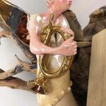 Skrzydła , waltornia oraz oprawa książki miedzią oraz złotem.
