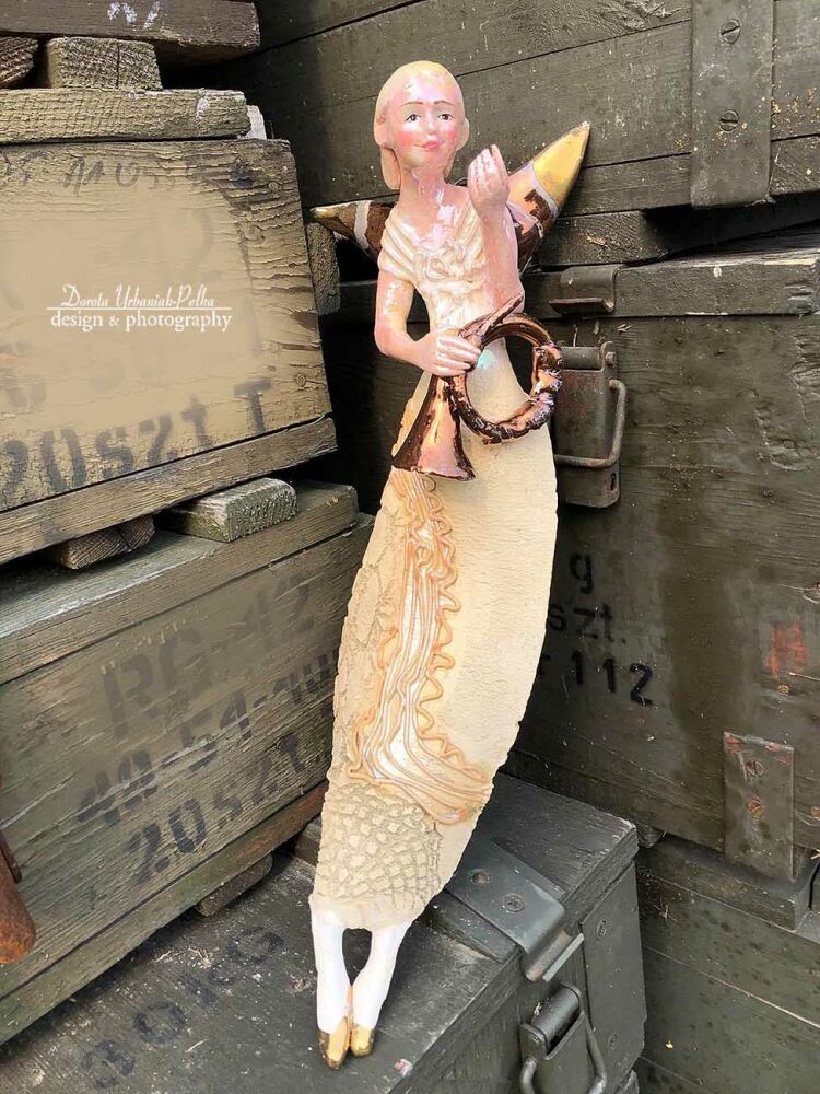 ANIOŁ TURMALINOWY Z MIEDZIANĄ TRĄBITKA