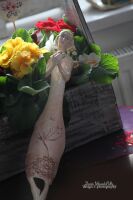 na włosach i tułowiu, stopy - luster