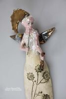 ANIOŁ TURMALINOWY Z MIEDZIANYMI SKRZYPCAMI