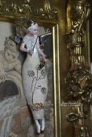 Rożek szkliwiony złotem, wykończony fątasiem.