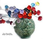 | Kamionka szkliwiona. Kwiat szkliwiony z obu stron co umożliwia naginanie kwiatu pod dowolnym kątem. Kwiat wykończony giętkim drutem umożliwiajacym używanie dekoracji nieskończenie wiele razy. Kolor drucika zielony. KWIATY RÓŻNOKOLOROWE |