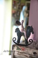 KOŃ WSPARTY NA STALOWYCH PATYNOWANYCH PŁOZACH