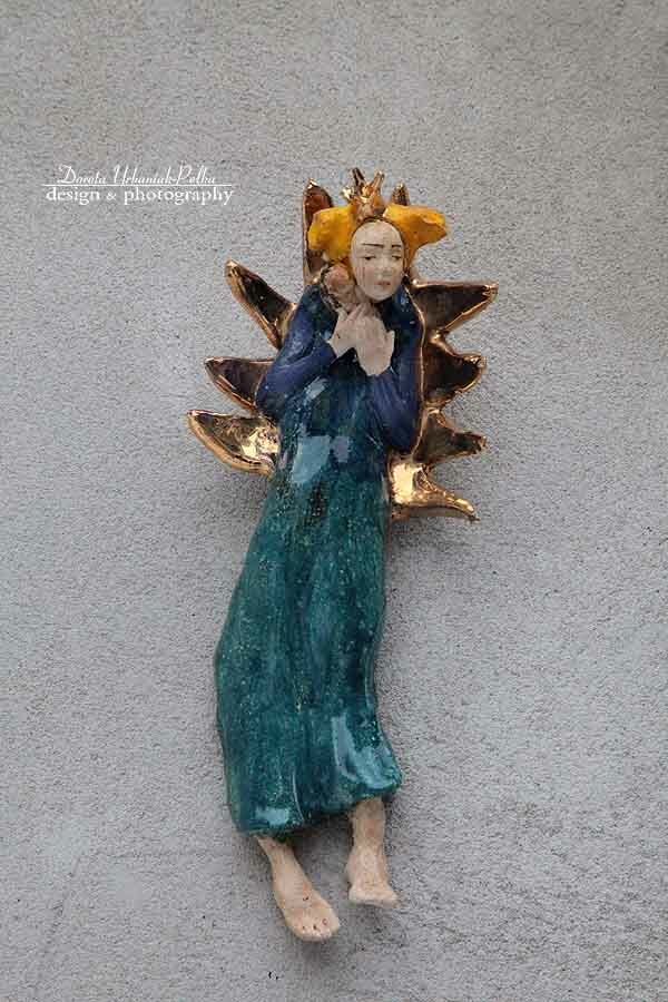 Korona oraz promienie szkliwione 16-karatowym złotem.